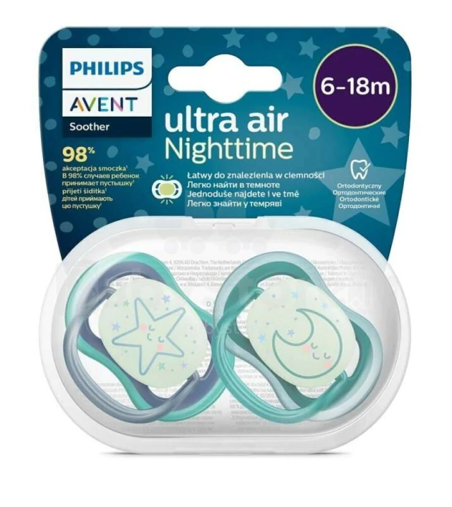 Avent Chupete Ultra Air Nighttime Silicona 6-18m Meses BPA FREE x2