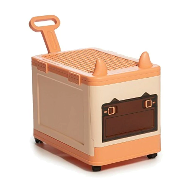 • Tapa con encastre para ladrillos de armar.• Tapa con 4 trabas.• Con manija rebatible.• Frente con abertura volcable.• 4 ruedas giratorias 360º con frenos.• Medidas: 31cm de ancho x 47cm de prof. x 49cm de alto (con manija levantada).