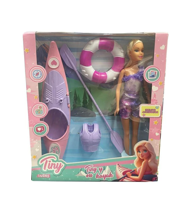 Muñeca Articula Tiny Y Su Kayak Con Accesorios - 28 Cm