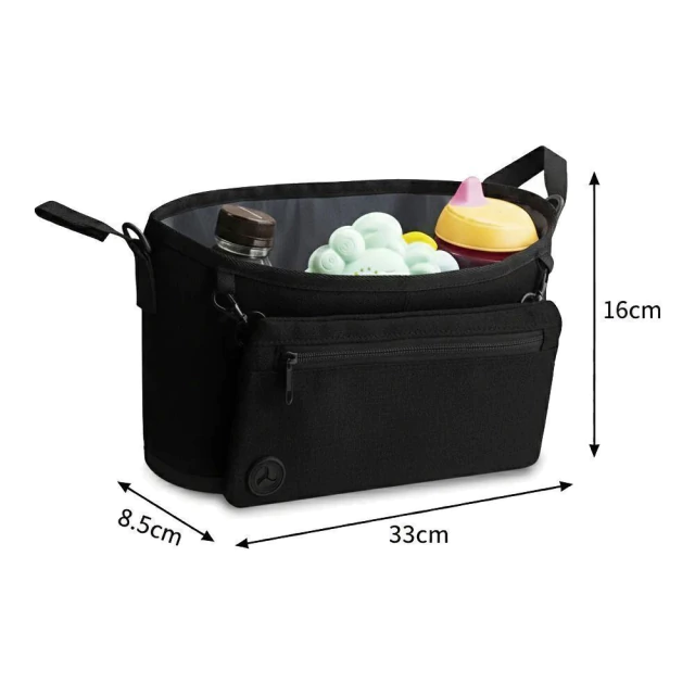 Organizador para cochecito de 33,5x16x8,5 cm con múltiples compartimentos para mamaderas, juguetes y accesorios. Este modelo, el Organizador Universal 6711, cuenta con tres compartimentos diseñados para mantener todo en su lugar. Incluye un práctico bolsillo frontal con cierre, ideal para objetos pequeños, y una salida para auriculares o cable USB, permitiendo que estés siempre conectado. Se ajusta fácilmente al manillar con correas laterales, asegurando un uso cómodo y seguro. Además, su diseño versátil permite utilizarlo como un bolso independiente, perfecto para cualquier ocasión. Fabricado en resistente poliéster, este organizador es práctico y funcional, garantizando que cada paseo sea más ordenado y placentero. Con porta mamadera y bolsillo para botella, es el complemento ideal para padres en movimiento.