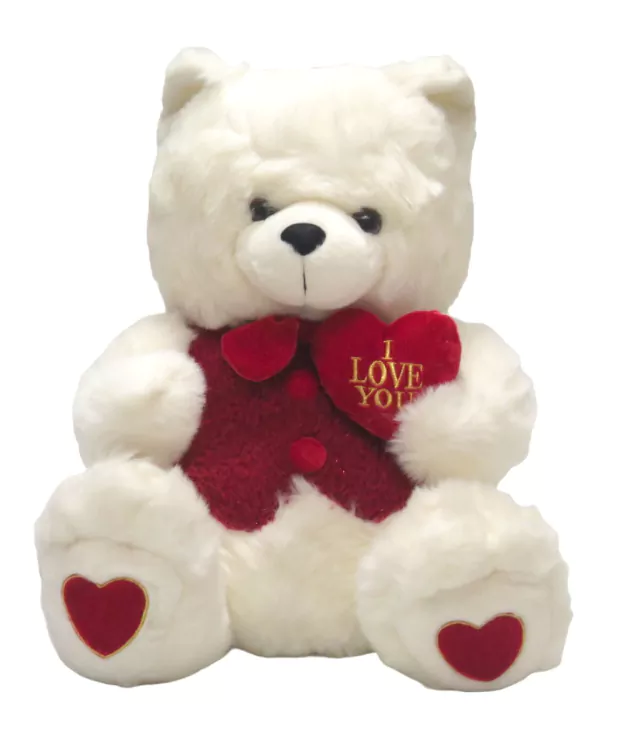 Oso de Peluche con Chaleco con Brillo y Corazon "I Love You" - 49 cm