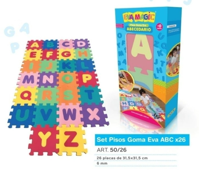 Piso Baldosa De Goma Eva x 26 Unidades Con Letras Encastrables de la A - Z - 31,5 x 31,5 cm