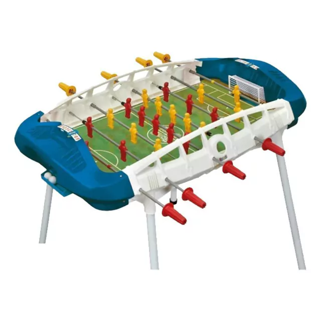 Metegol moderno con empuñaduras ergonòmicas, patas desmontables e inclinadas. Incluye contador de goles y 2 pelotas.