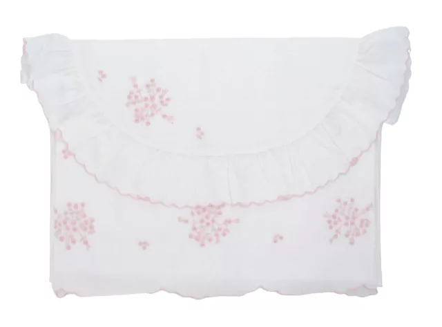 Blanco Bordado Rosa Flores (Talle: Moisés 72x92cm)